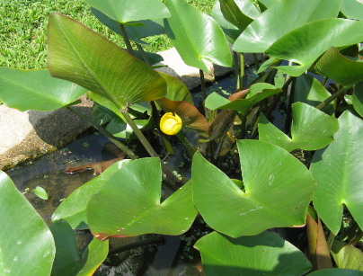 개연꽃의 잎은 넓고 물을 잘 튕겨내는 성질이 있어 빗물이 모이지 않고 떨어지는 특성을 가지고 있습니다.